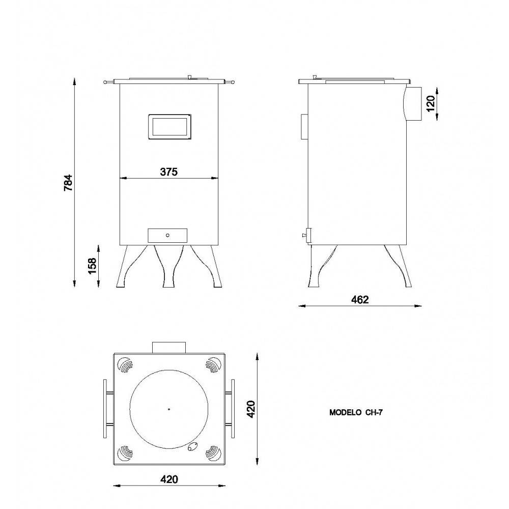Ancho Cámara de Combustión: Ø 375 mm